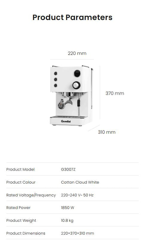 This semi-automatic espresso machine is ideal for home baristas who value professional-grade performance without compromising convenience. Whether you’re pulling your first shot or exploring advanced brewing techniques, the G3007Z provides the tools and flexibility to craft excellent espresso drinks.