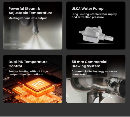 Dual boiler system with 15-bar Italian pump for stable extraction and powerful steam performance